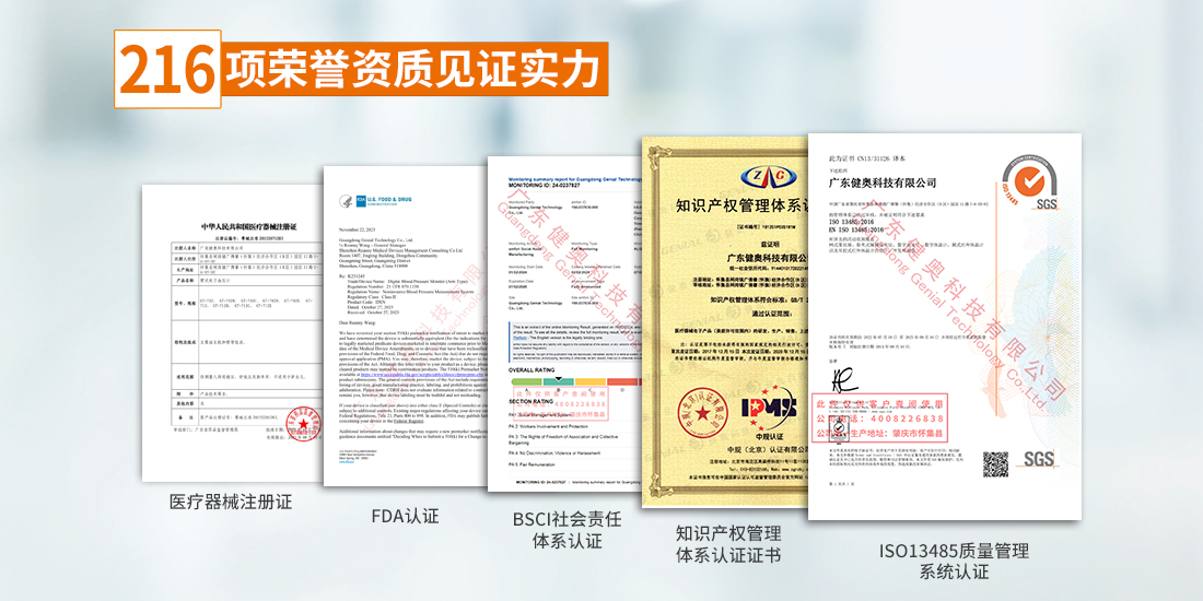 不斷研發創新,企業已經獲得216項榮譽資質,并且通過了ISO 13485 、ISO 45001、 ISO 14001、GB/T 29490知識產權管理體系認證、BSCI社會責任體系認證;