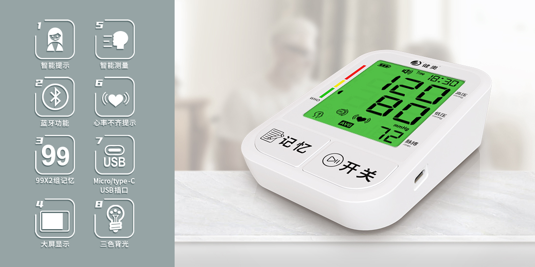 智能芯片,多重技術升級, 99組記憶數據精確掌握血壓變化